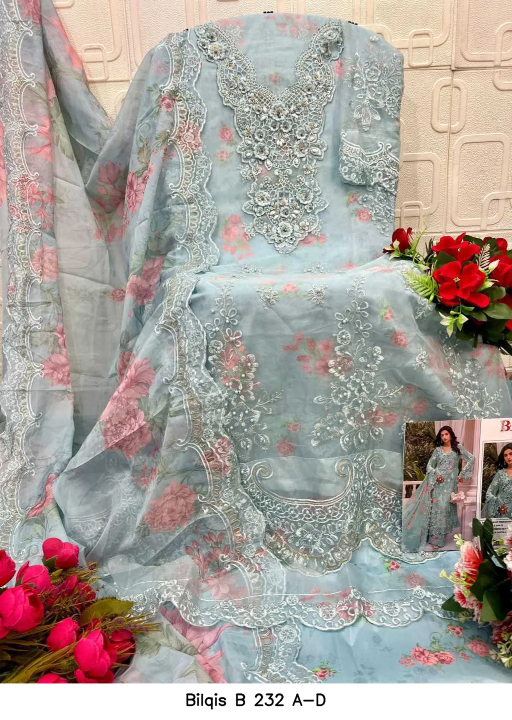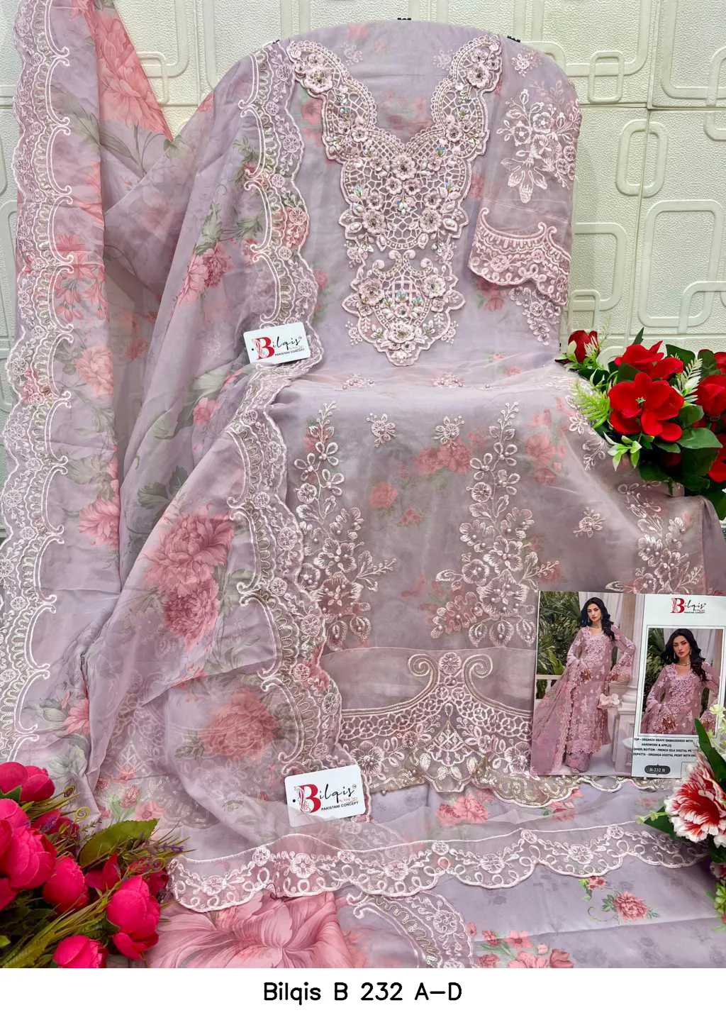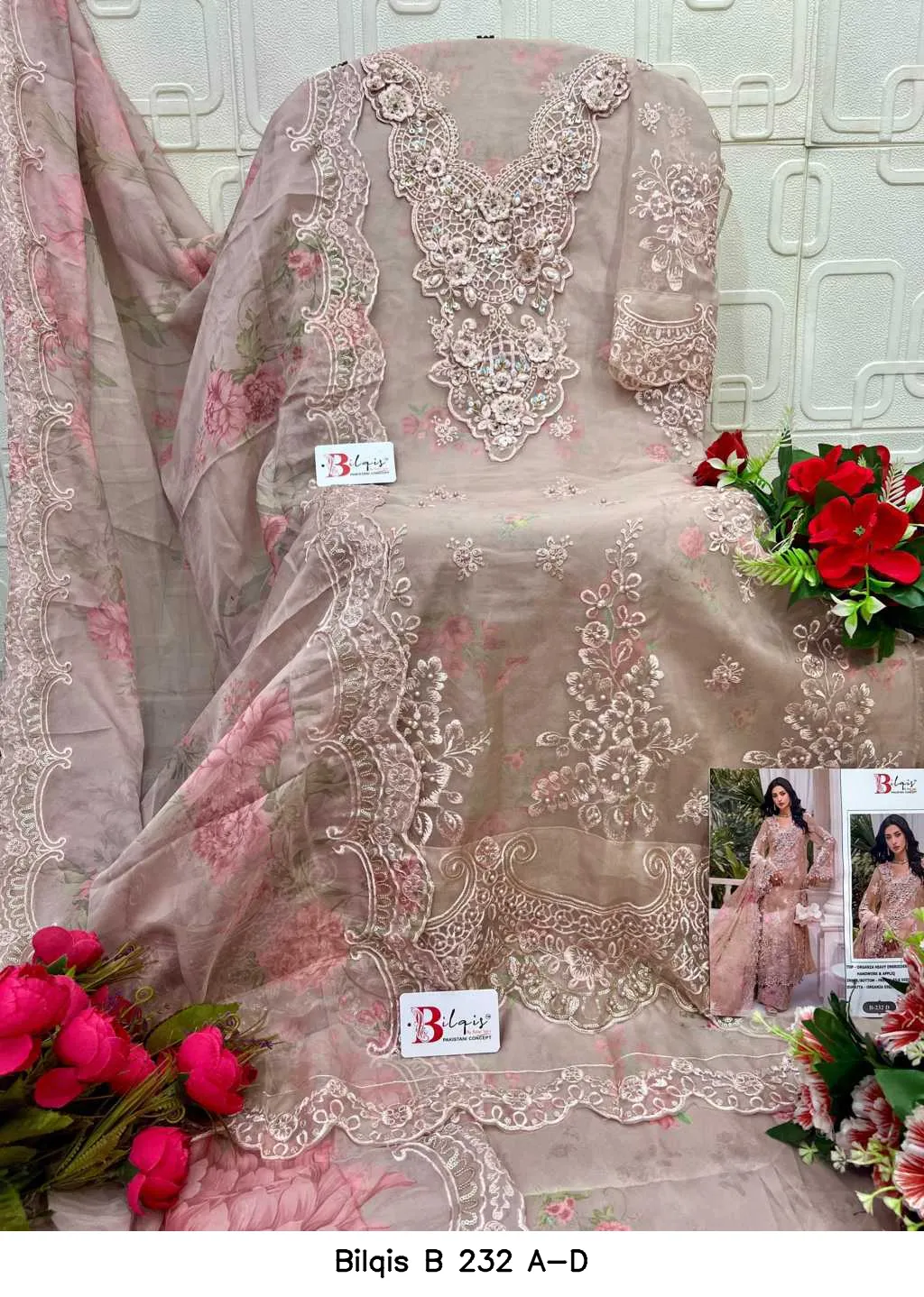 | Top | Organza Heavy Embroidered with Khatli Work & Appliq |