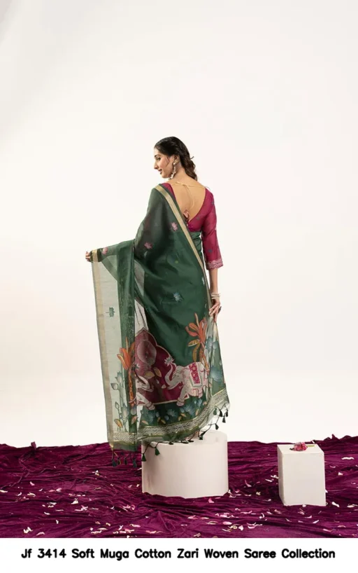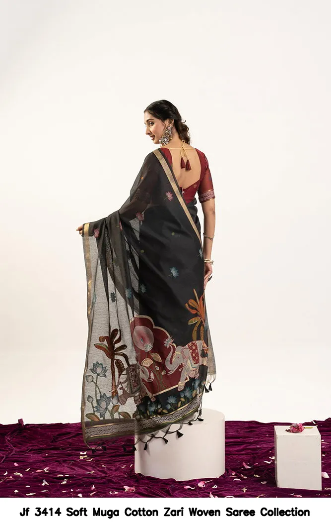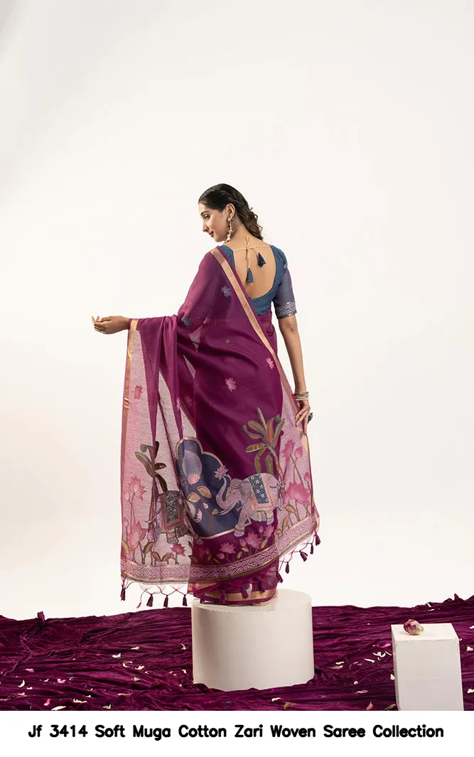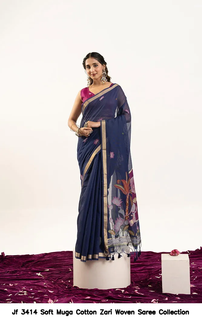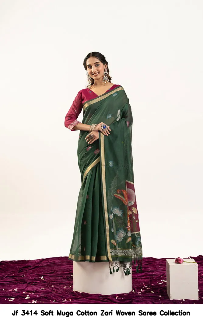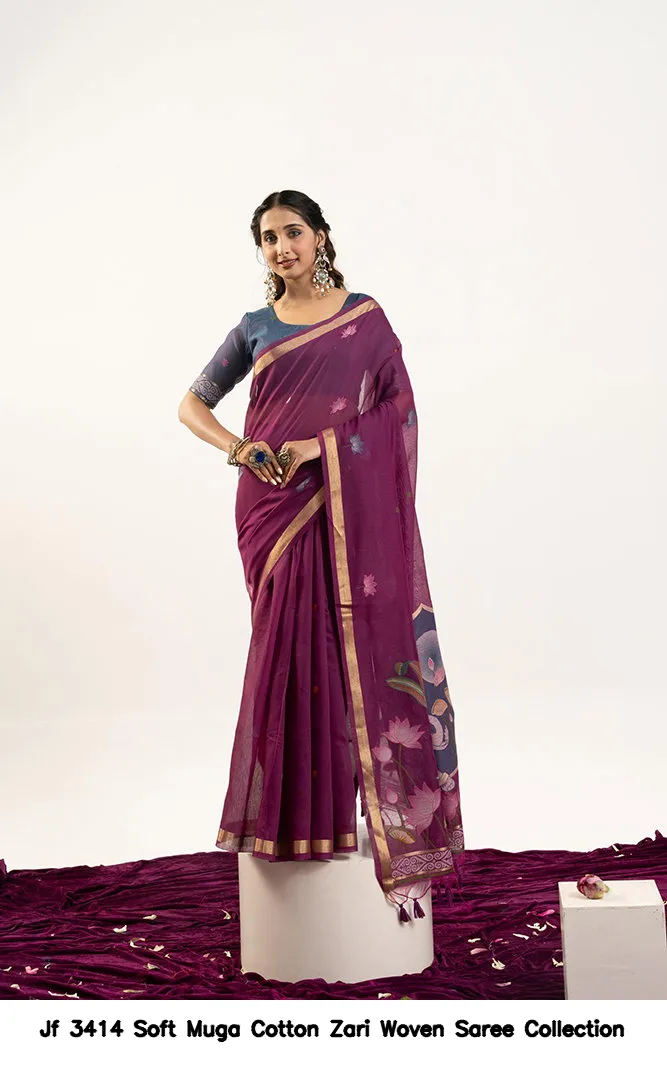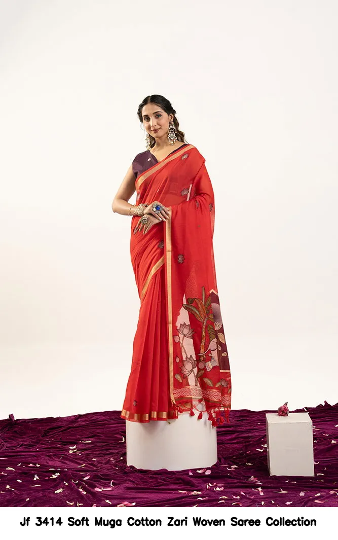 Jf 3414 Soft Muga Cotton Zari Woven Saree Collection