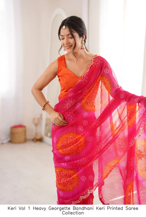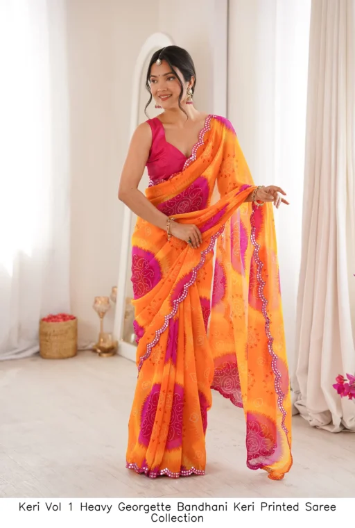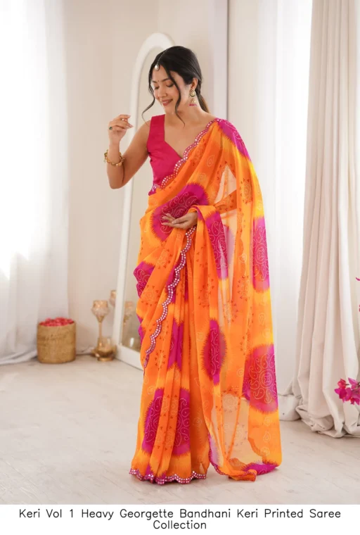 Be the first to review “Keri Vol 1 Heavy Georgette Bandhani Keri Printed Saree Collection” Cancel reply