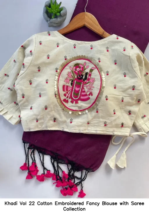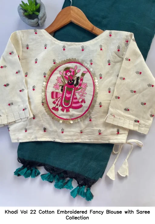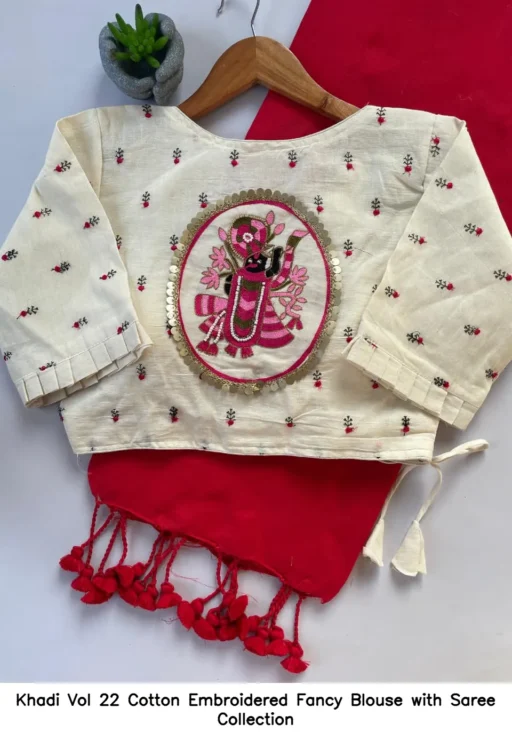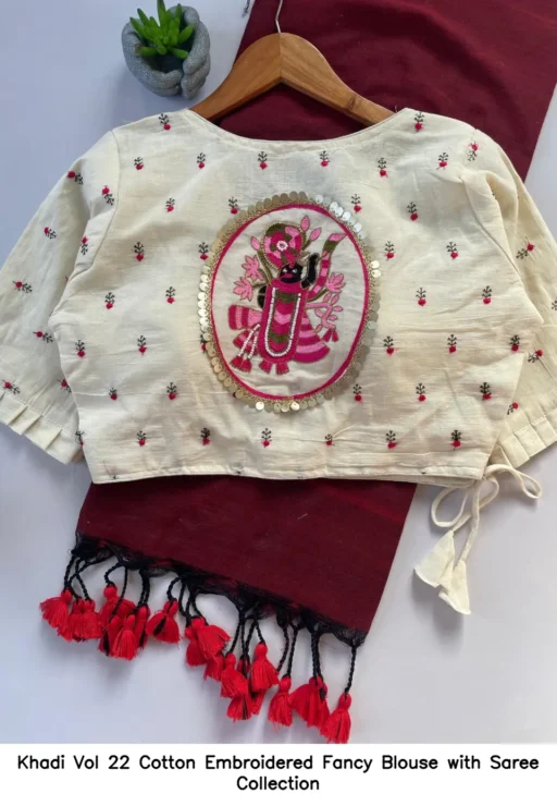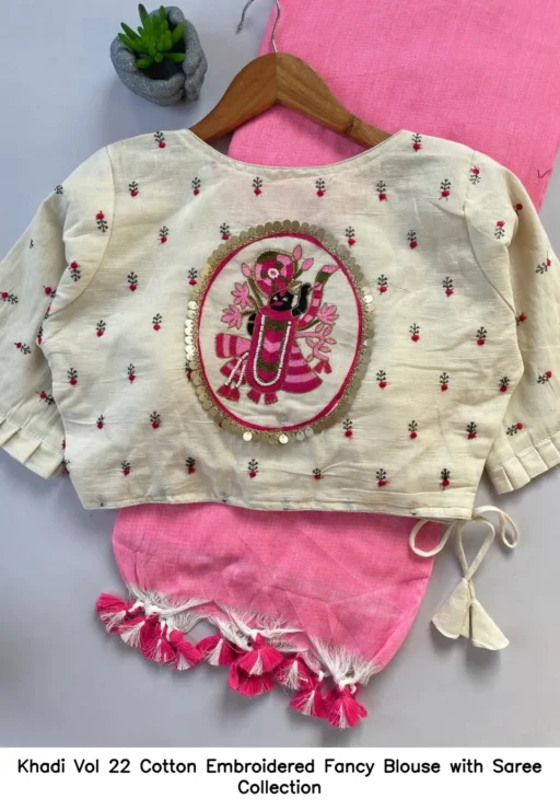Khadi Vol 22 Cotton Embroidered Fancy Blouse with Saree Collection