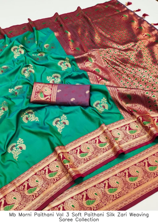 Mb Morni Paithani Vol 3 Soft Paithani Silk Zari Weaving Saree Collection