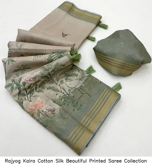 Be the first to review “Rajyog Kaira Cotton Silk Beautiful Printed Saree Collection” Cancel reply