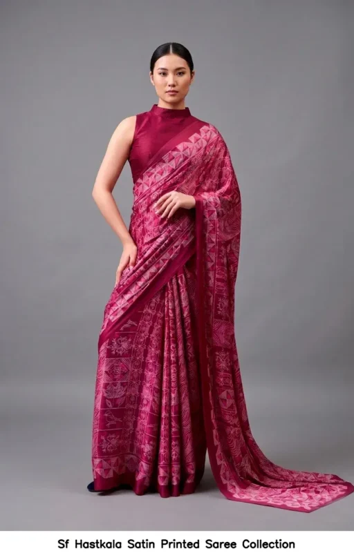Sf Hastkala Satin Printed Saree Collection
