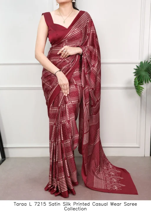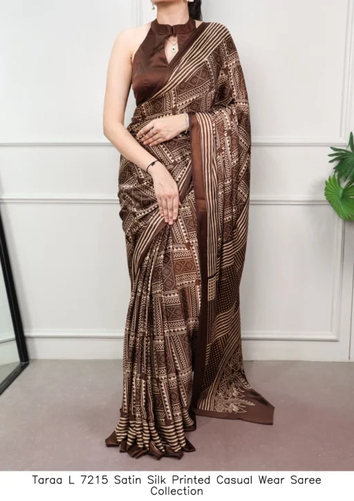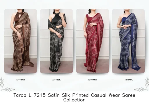 Taraa L 7215 Satin Silk Printed Casual Wear Saree Collection