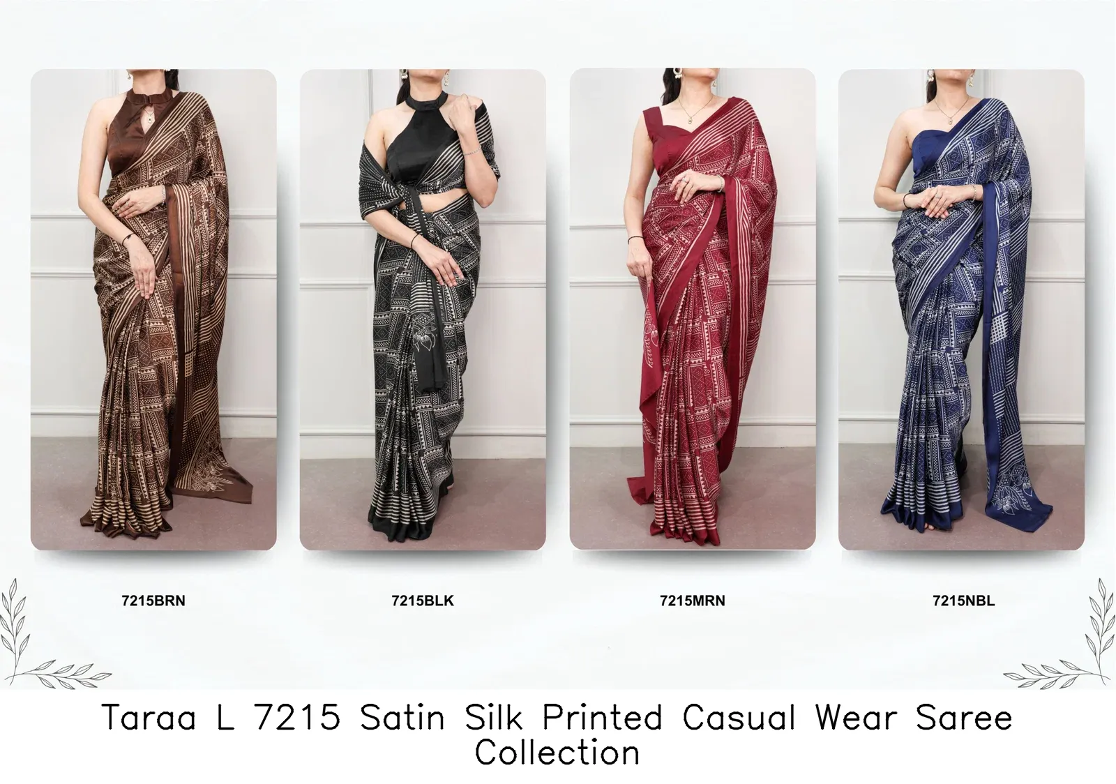 Be the first to review “Taraa L 7215 Satin Silk Printed Casual Wear Saree Collection” Cancel reply